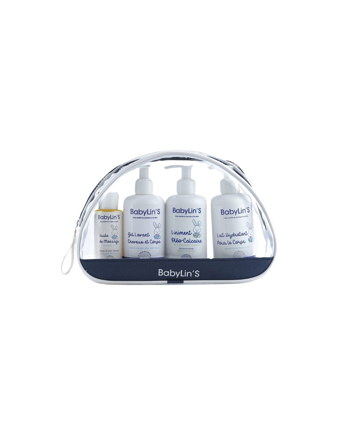 Offrez à votre bébé une routine de soin complète grâce à cette trousse transparente pratique et élégante. Elle contient quatre essentiels :
